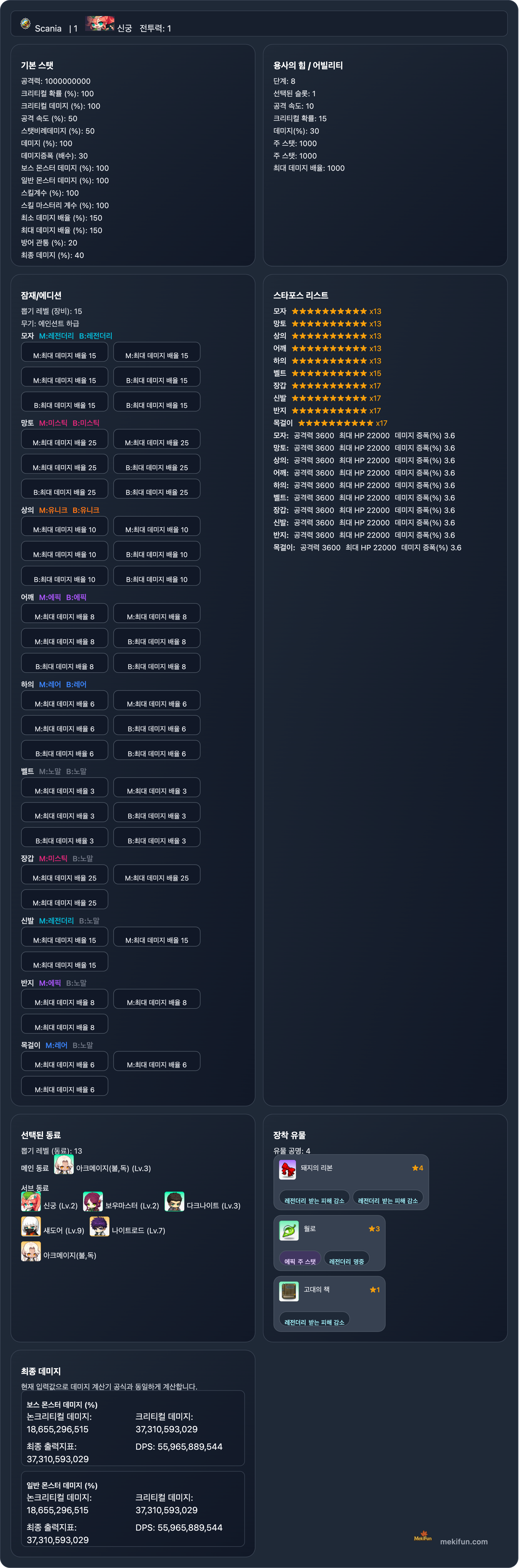 월드/직업/전투력, 잠재·에디셔널, 스타포스, 동료/유물, 데미지까지 한눈에!