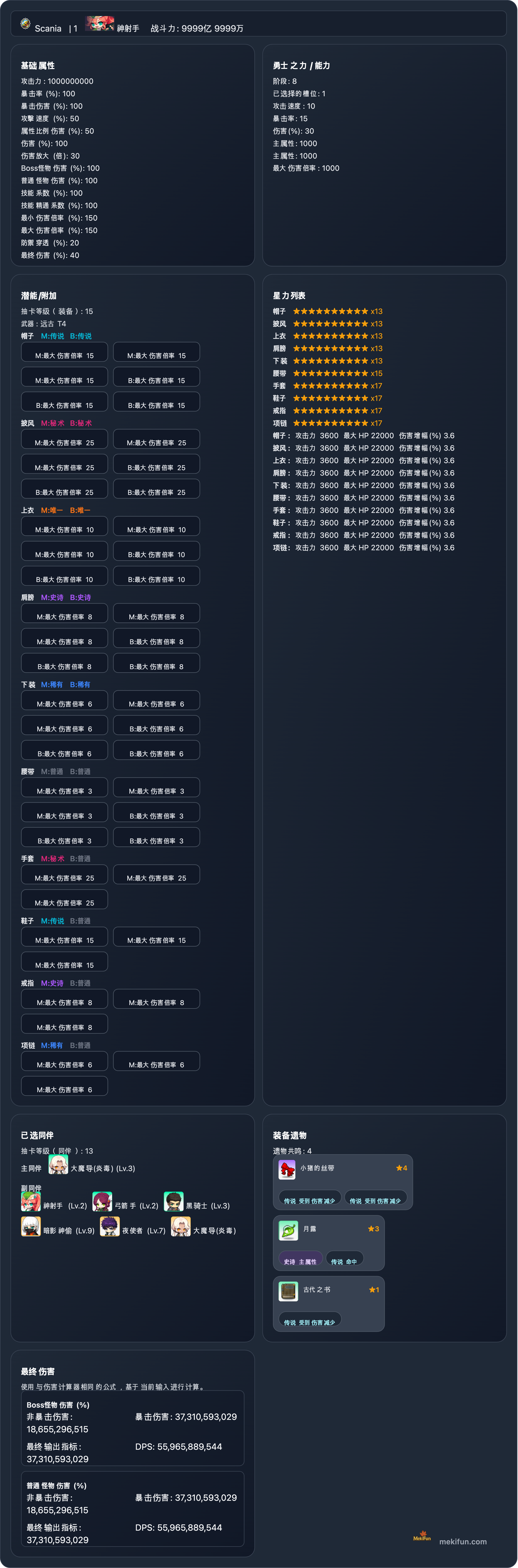 世界、职业、战力、潜能/附加、星力、同伴/遗物、伤害等一目了然。